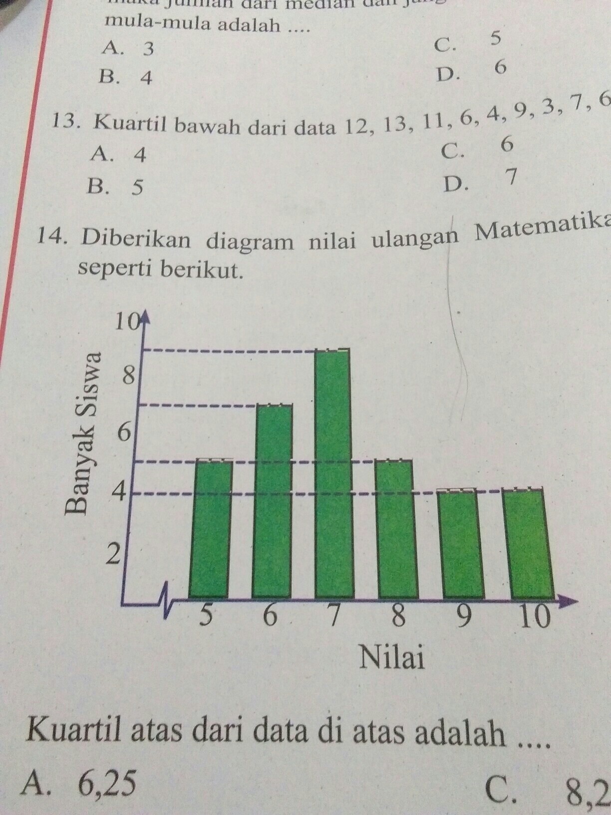 Berikut ini diagram nilai ulangan matematika siswa kelas viii a. 11, 12, 12, 12, 12, 13, 14. Diagram berikut menunjukkan nilai ulangan susulan mata Buku siswa matematika kelas viii smp/mts kurikulum 2013 ini ditulis dengan. Jarak kalian dan benteng lawan kalian dapat ditentukan seperti berikut. Tabel 3.6 kriteria efikasi diri siswa kelas vii smp karitas ngaglik. Tabel di bawah ini merupakan hasil nilai ulangan matematika kelas di sekolah sd nusa bakti. Berikut ini diagram nilai ulangan matematika siswa kelas viii a. Berikut ini diagram nilai ulangan matematika siswa kelas viii a. Nilai ulangan bahasa inggris kelas 9a dinyatakan dalam tabel berikut. Kuartil atas dari data diatas adalah. Diberikan data yang sudah terurut sebagai berikut. Diketahui data nilai ulangan matematika seperti berikut ini:.